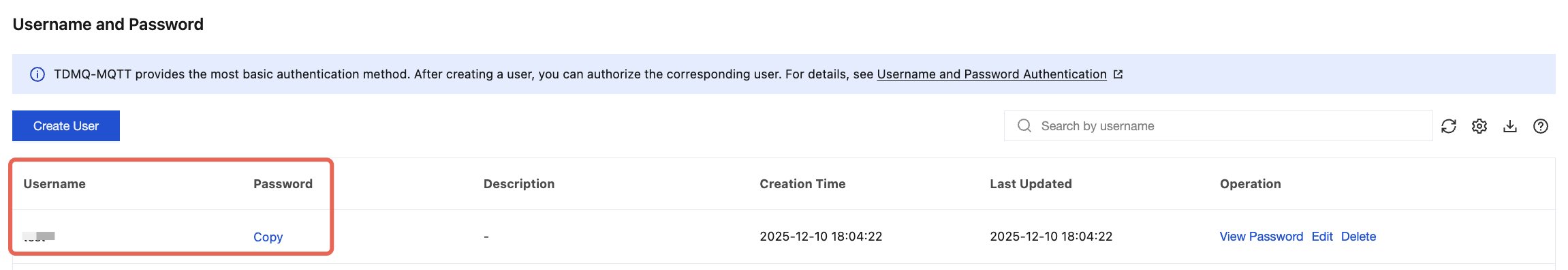 Connection Username, copy it on the authentication management page of the cluster detail page in the console.