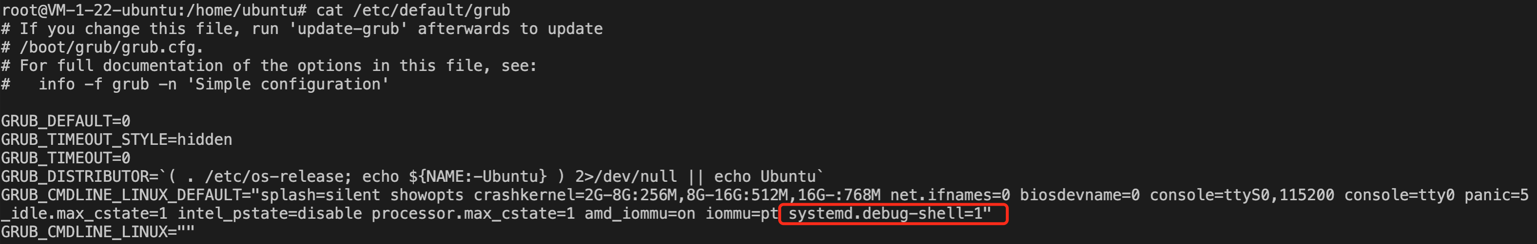1. Run the following command to edit the file /etc/default/grub.