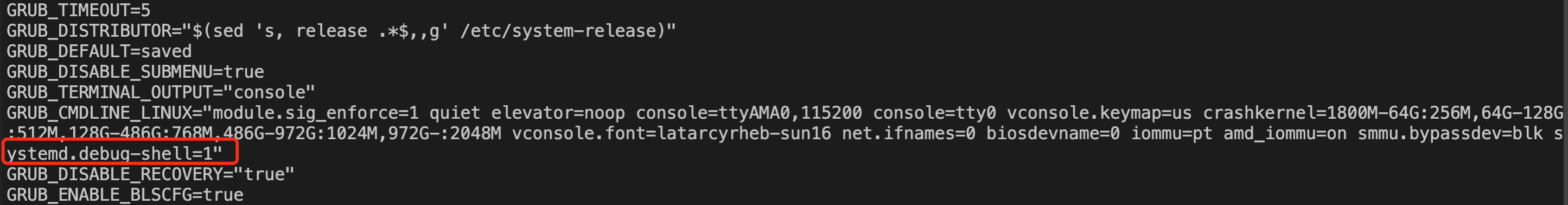 1. Run the following command to open the /etc/default/grub file.