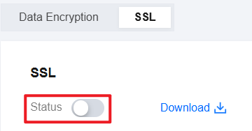 1. Log in to the TencentDB for MySQL console. In the instance list, click an Instance ID or Manage in the Operation column to enter the instance management page. 2. On the instance management page, select the Data Security > SSL tab.