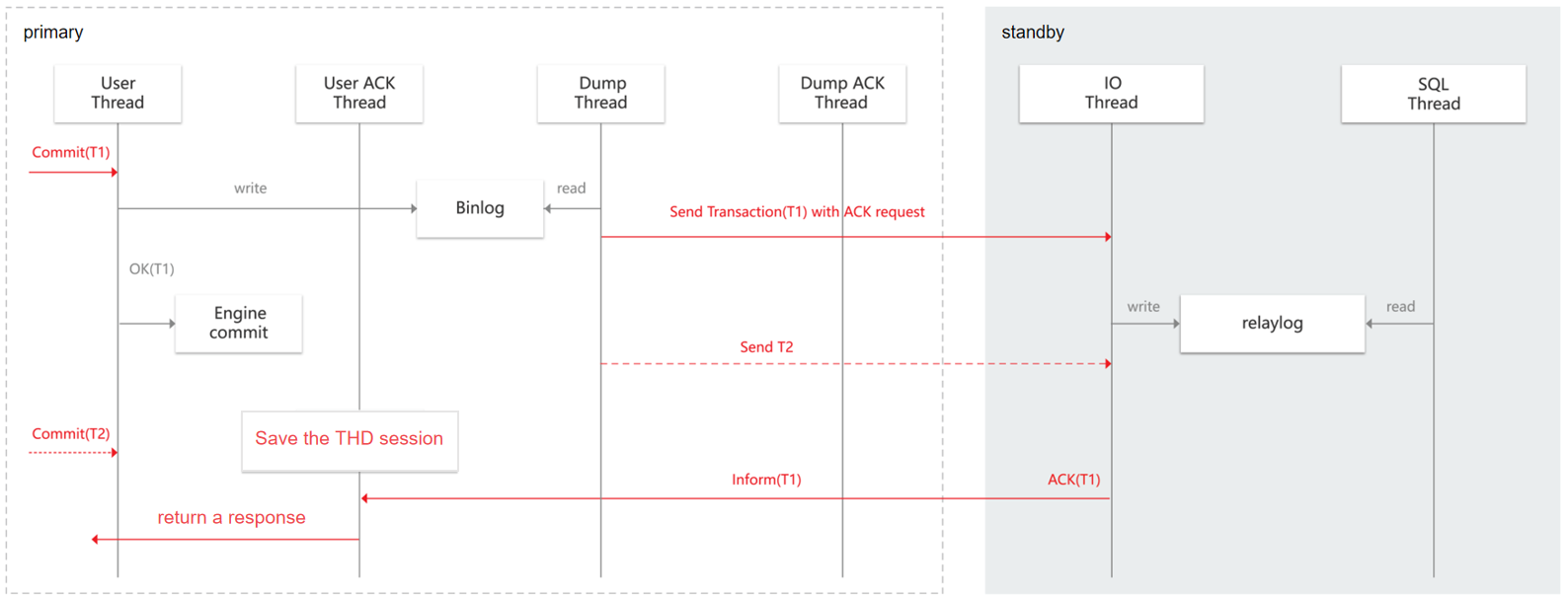 When a request is initiated at the application layer, the primary node returns a success response to the application layer only after the standby node returns a success message, ensuring complete data consistency between the primary and standby nodes.