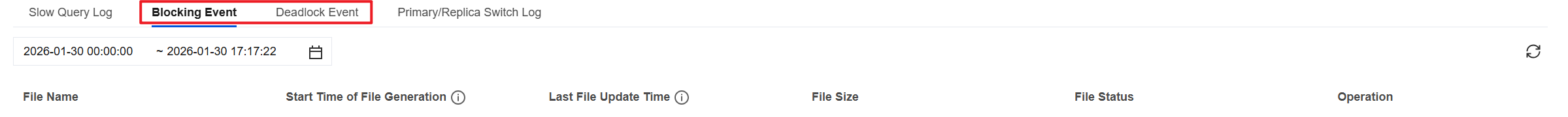 You can download blocking or deadlock event files to view the corresponding log data for troubleshooting. Before downloading files, you can learn about file generation and download policies through the following description to streamline the processes of querying and downloading files.