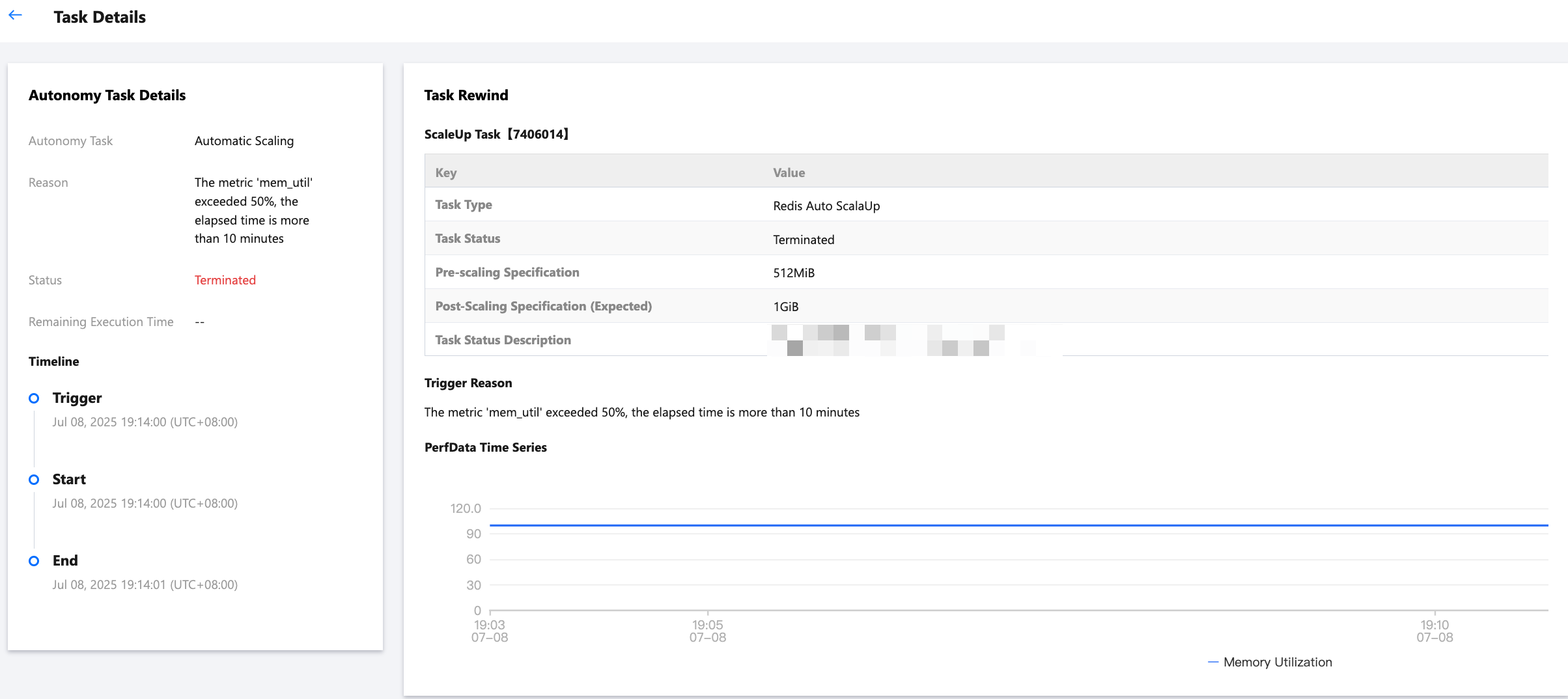 Autonomy Task Details: Name, event trigger cause, event status, and remaining execution time of an autonomy task (automatic scale-out only currently).
