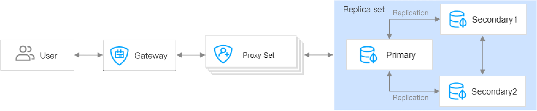 Primary node | Handles all read-write requests from the client. | Each replica set has only one primary node to ensure data consistency. |