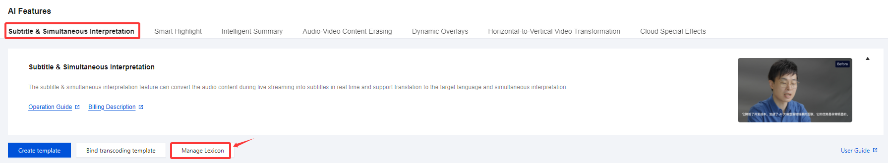 Category | Term lexicon:Translate domain-specific terms for customers and correct translation results. |