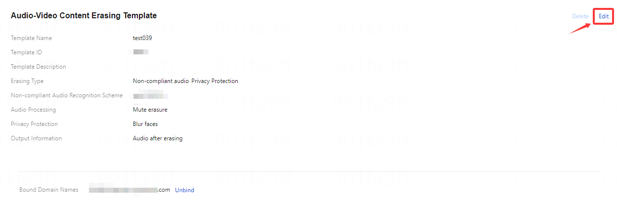 2. Select the successfully created Audio-video content erasing template, click Edit on the right to go to modify the template information.