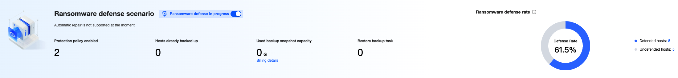 Restoring backups: If the host has been attacked by a ransomware, you can click this option to select a snapshot from the backup list for restoration.