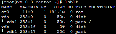 MOUNTPOINT of the original partition is empty, the unmount is successful. This document takes the /dev/vdb1 partition as an example. Below is the returned result.