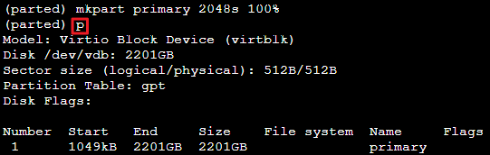 mkpart primary 2048s 100% and press Enter to create the partition.
