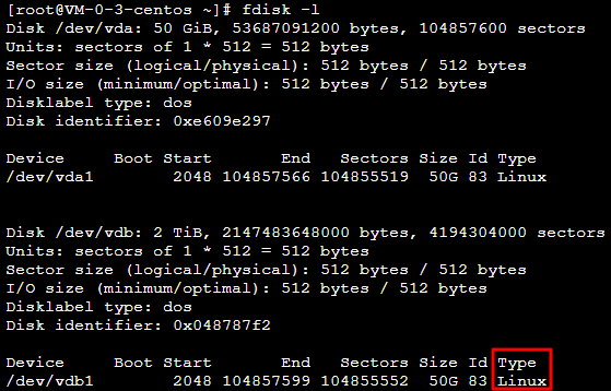 Here, 2048s indicates the initial disk capacity, and 100% indicates the maximum disk capacity. This is for reference only. You can choose the number of disk partitions and their capacities based on your business needs.p and press Enter to check whether the partition has been replaced successfully. If the following result is shown, the replacement is successful: