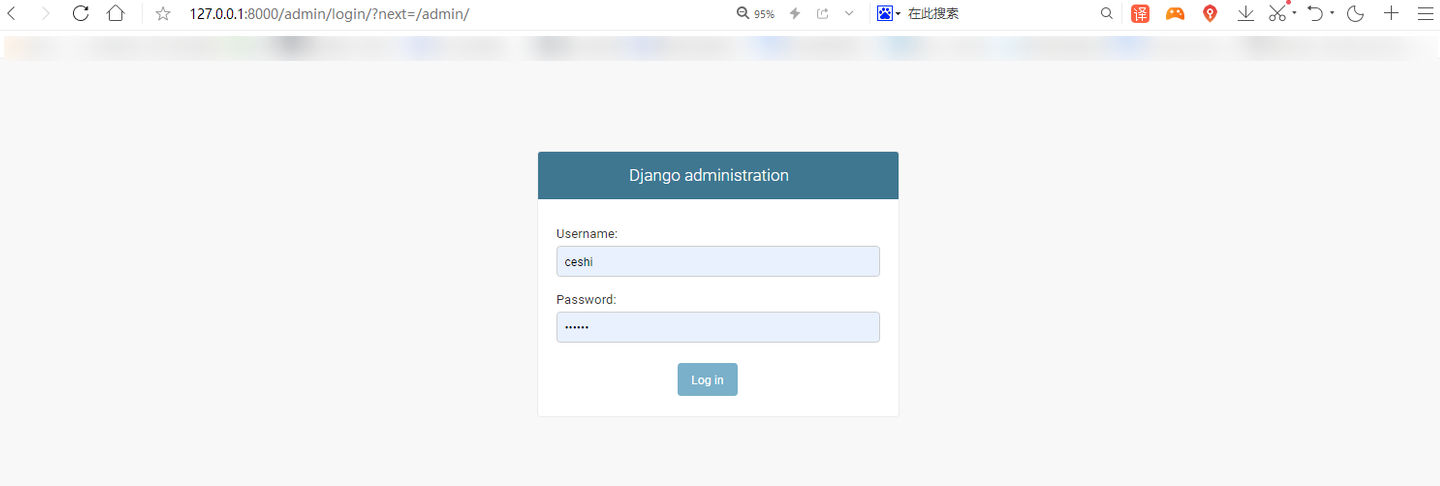 http://127.0.0.1:8000/admin/,并输入刚才设置的账号密码即可完成登录。