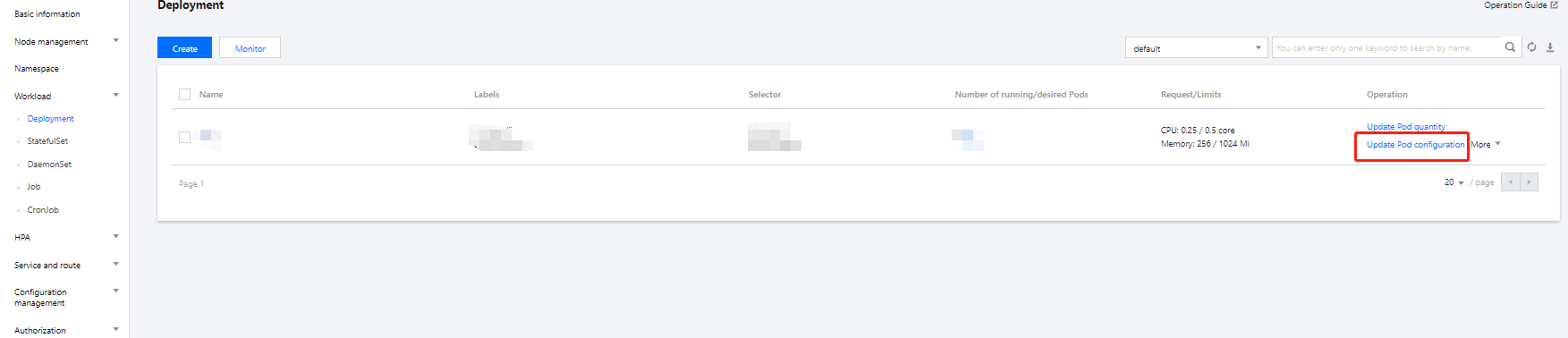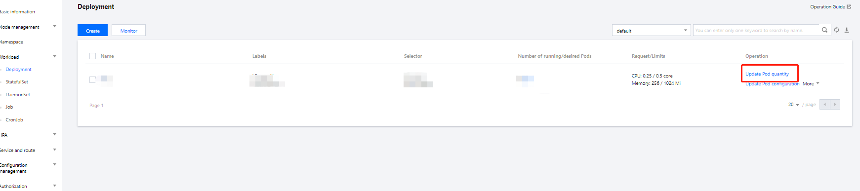 3. In the row of the Deployment for which the Pod quantity should be adjusted, click Update Pod Quantity to go to the Pod quantity updating page, as shown below: