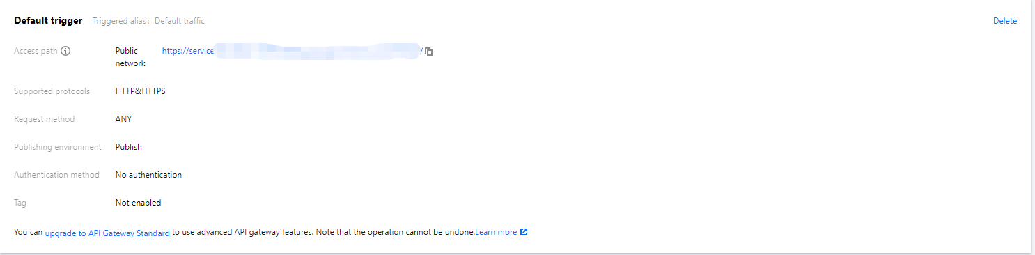 5. Click Complete. After creating the HTTP-triggered function, you can view its basic information on the Function management page.
