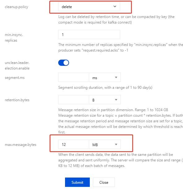 You need to make the following modifications to the configuration of this topic. Other parameters can be configured as needed.