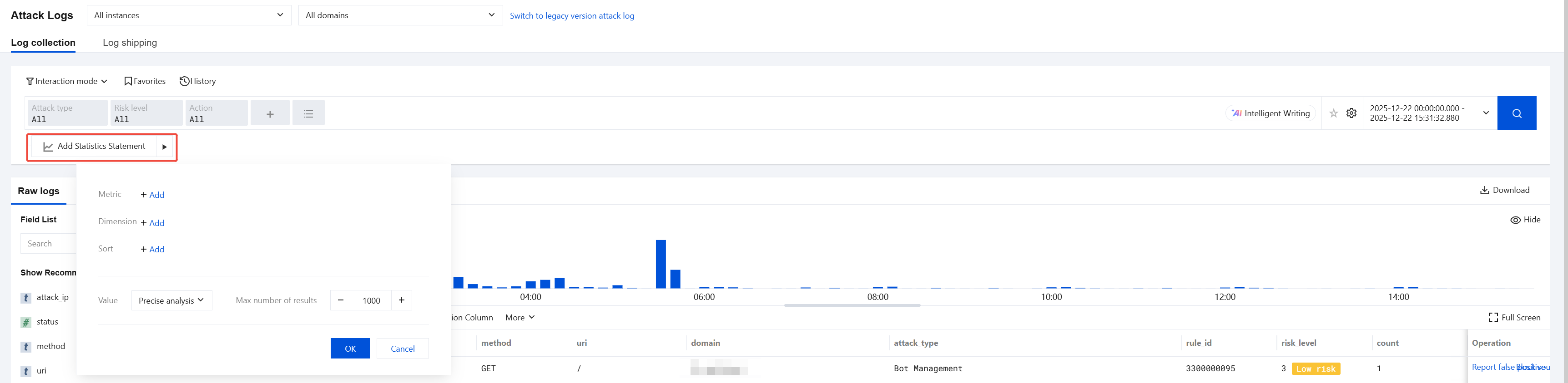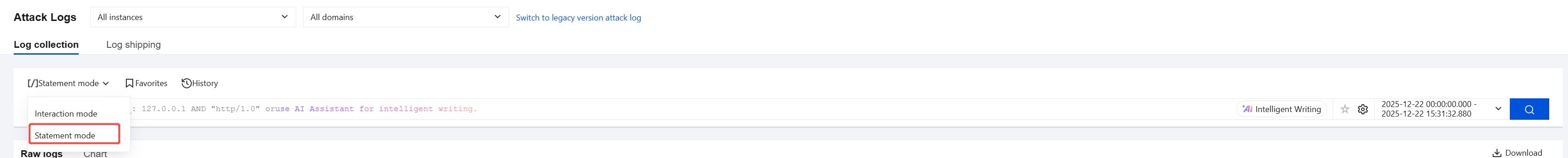 a. On the Attack Logs > Log collection page, choose Statement mode.
