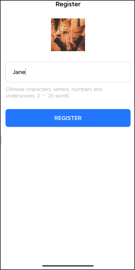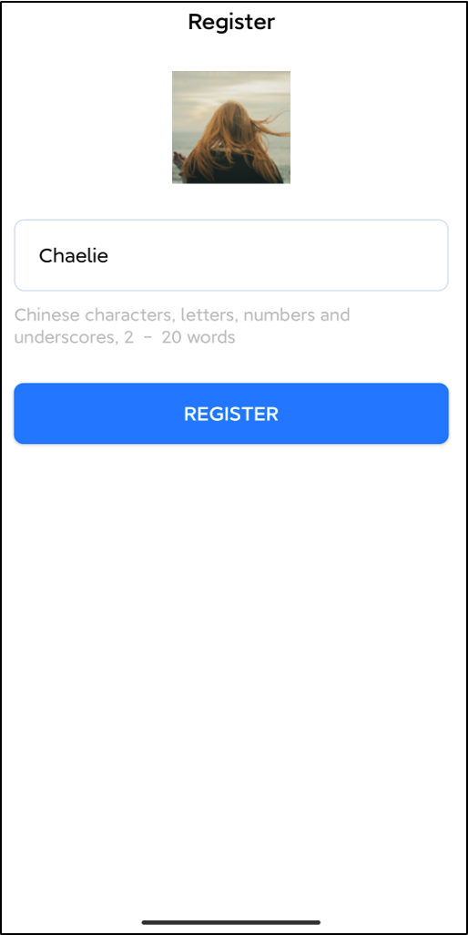 After the Demo starts, please enter an ID in the User ID field. If your current UserID has not been registered, you will enter the registration interface, where you can set a nickname for yourself.