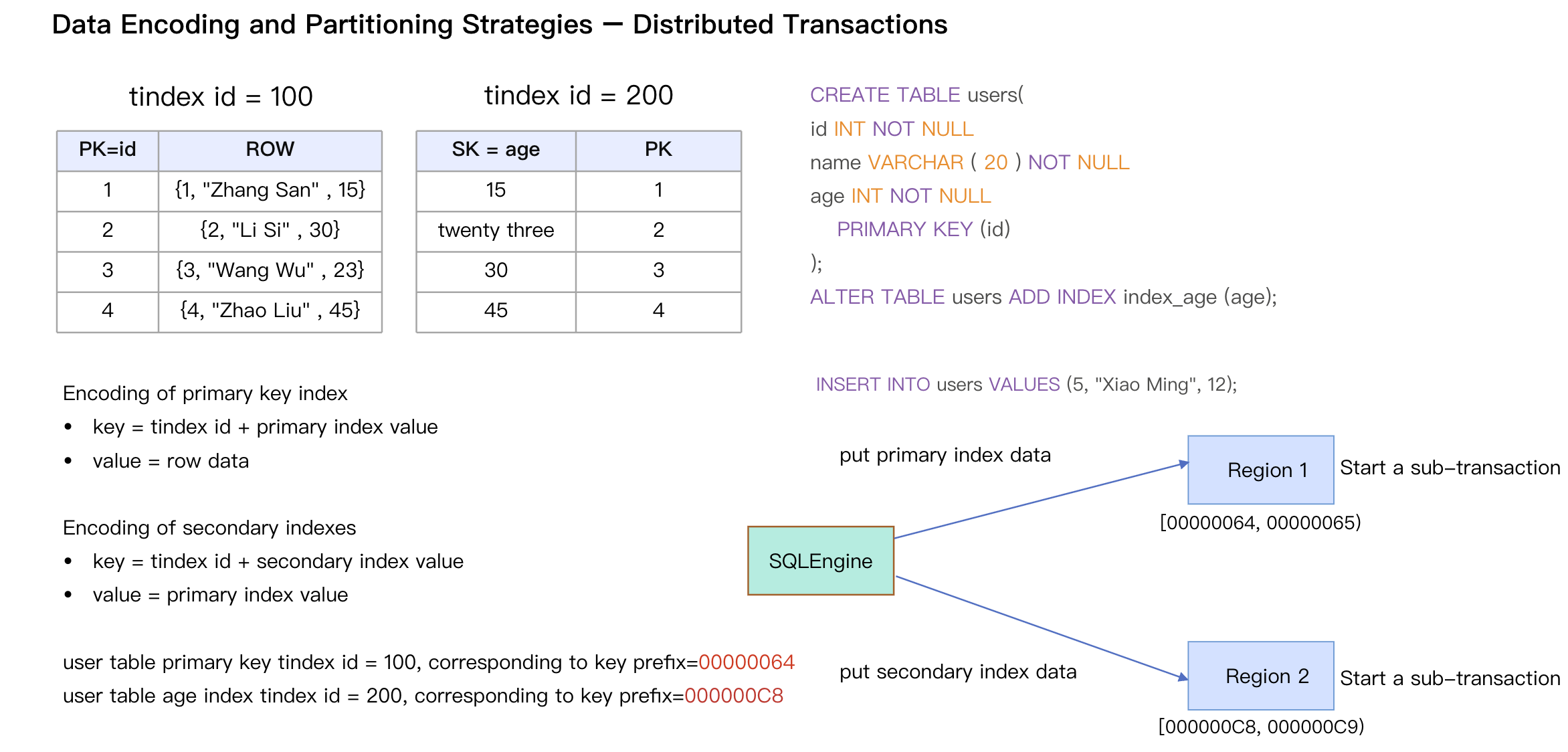 3. The primary key index key prefix is 00000064, and the secondary index key prefix is 000000C8; their key ranges are far apart.