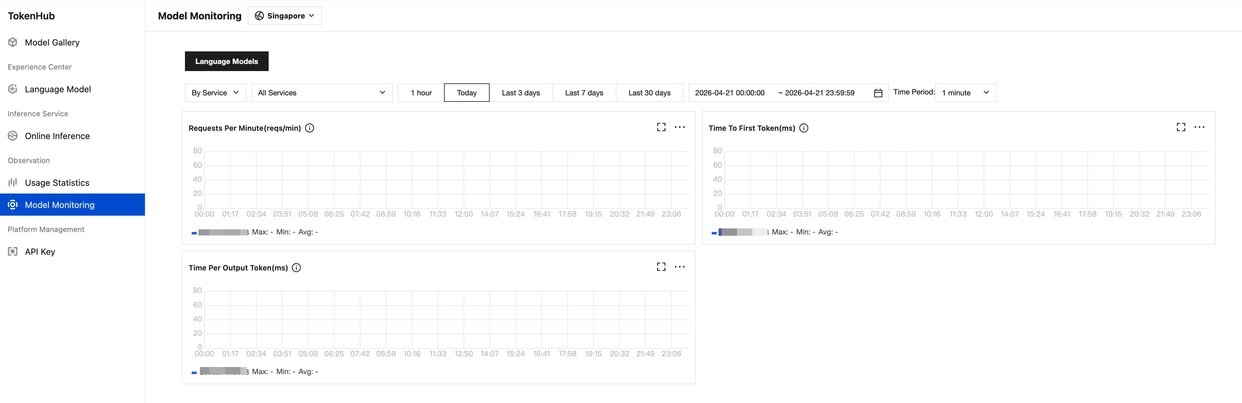 Filter Dimension | Supports filtering by service/model and switching to different aggregation views. |