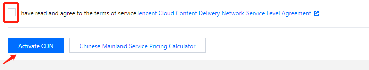 Nyatakan persetujuan Anda dengan Ketentuan Layanan, klik Activate CDN (Aktifkan CDN), dan mulai gunakan layanan akselerasi.