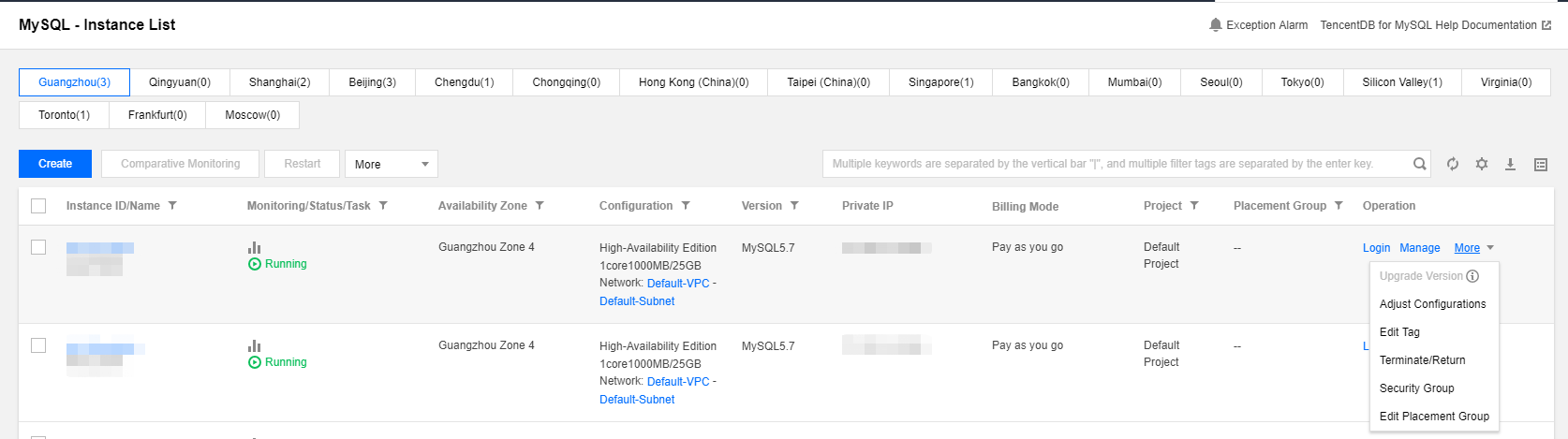 3.1 Membeli instans TencentDB for MySQL