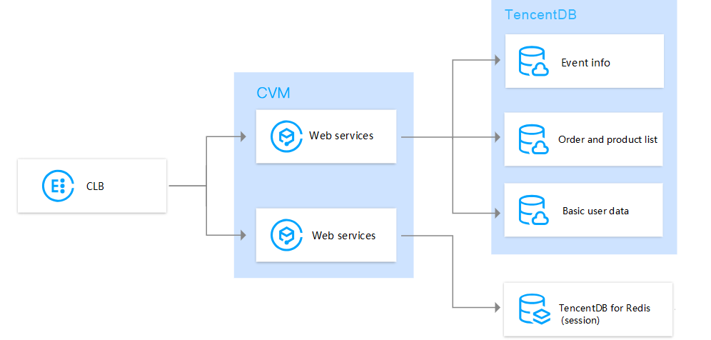 TencentDB for MySQL dapat berfungsi sebagai media penyimpanan data server di web dan aplikasi seluler. Untuk skenario yang ada lebih banyak baca daripada tulis, instans baca saja dapat dibuat untuk database yang sering dibaca, yang sangat meningkatkan performa baca.