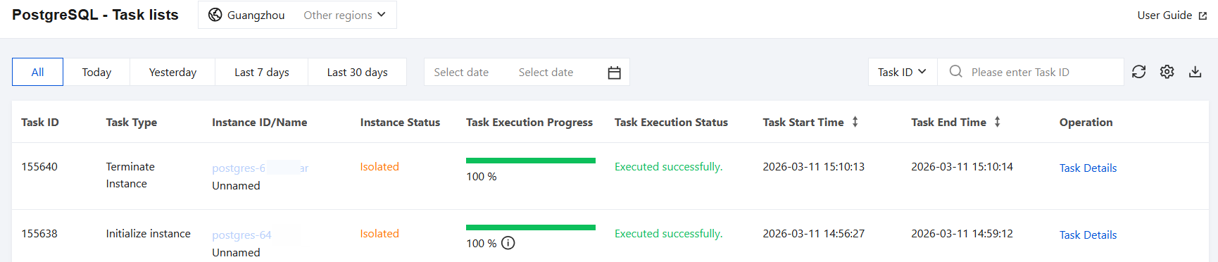 Changing the read-only group for a read-only instance | { "NewROGroupId":"pgrogrp-3p21ssox"//Target read-only group ID "OldROGroupId":"pgrogrp-dct9wsml"//Source read-only group ID "ROInstanceId":"pgro-a9qea3c9"//Read-only instance ID } | { "NewROGroup":{//Target read-only group details. "ROGroupId":"pgrogrp-3p21ssox" "ROGroupIp":"10.0.0.2" "ROGroupName":"1" "ROGroupPort":5432 } "OldROGroup":{//Source read-only group details. "ROGroupId":"pgrogrp-dct9wsml" "ROGroupIp":"10.0.0.6" "ROGroupName":"2" "ROGroupPort":5432 } "ROInstance":{//Read-only instance details. "ROInstanceId":"pgro-a9qea3c9" "ROInstanceIp":[ 0:"10.0.0.17" ] "ROInstanceName":"Unnamed" "ROInstancePort":5432 } } |