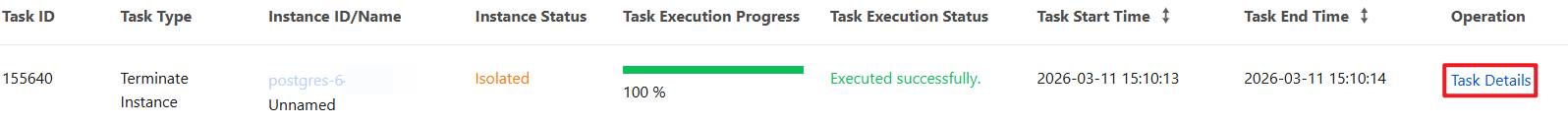 Deleting a network | { "DBInstanceId":"postgres-6s1kuw28"//Instance ID "SubnetId":"subnet-piadji8r"//Subnet ID. "Vip":"10.0.10.15"//The VIP to be deleted "VpcId":"vpc-fz41fhgo"//VPC ID } | { "DBInstanceId":"postgres-6s1kuw28"//Instance ID "DBInstanceNetInfo":{//Details of the deleted network. "Address":"" "Ip":"10.0.10.15" "Port":5432 "Status":"closed" "NetType":"private" "VpcId":"vpc-fz41fhgo" "SubnetId":"subnet-piadji8r" "ProtocolType":"postgresql" } } |