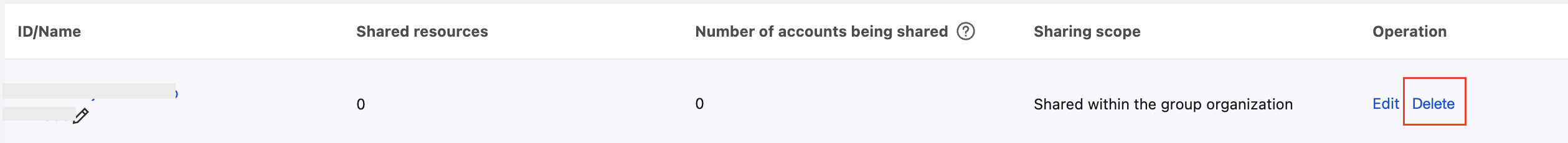 3. 削除する共有ユニットがある行の右側の削除をクリックします。下図の通り: