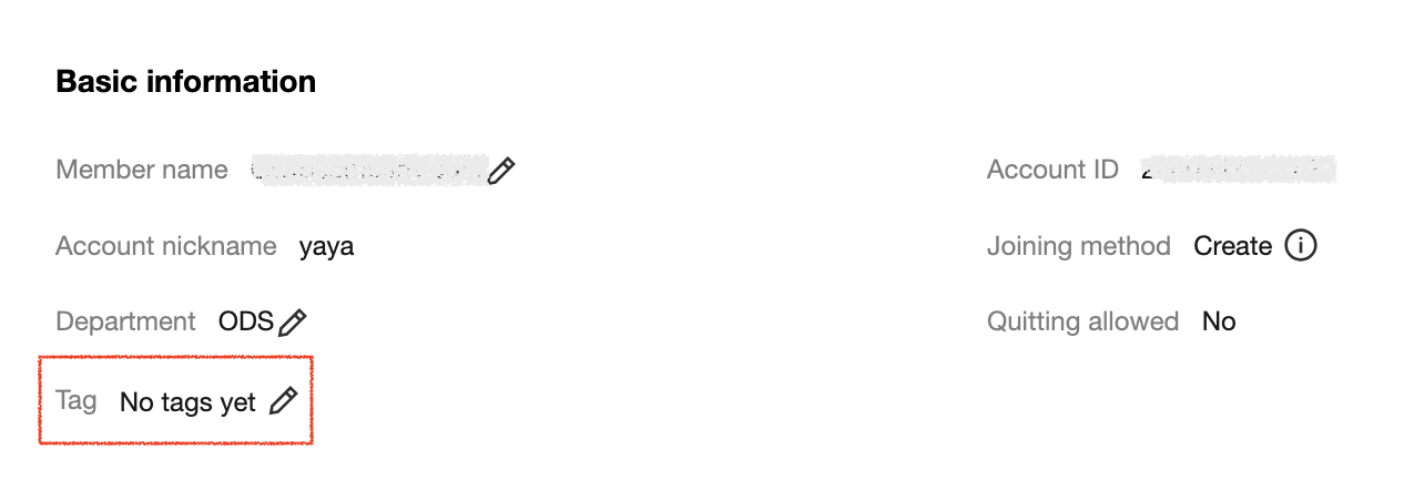 組織内のメンバー:TCOコンソールのメンバーアカウント管理ページで、対応するメンバーのTag情報を編集します。
