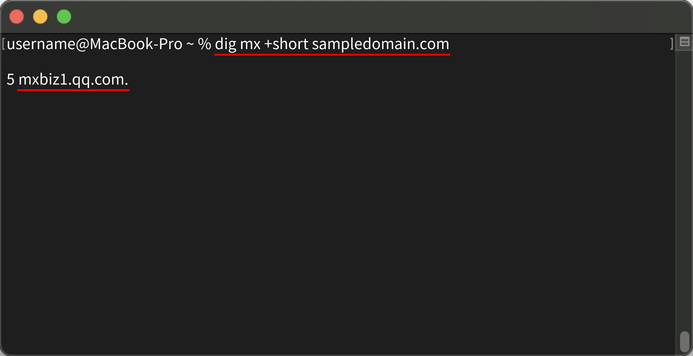 dig mx +short sampledomain.com