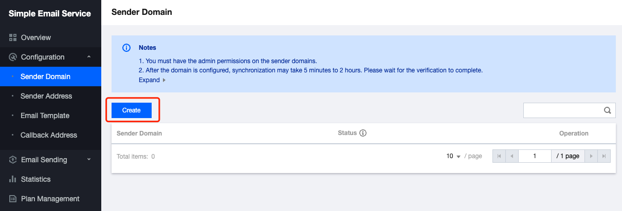 5. ドメイン名がTencent Cloudでホストされている場合は、DNS解決DNSPodコンソールに進んで検証情報を設定してください。対応する送信ドメイン名をクリックすると、設定詳細ページに進むことができます。 説明: