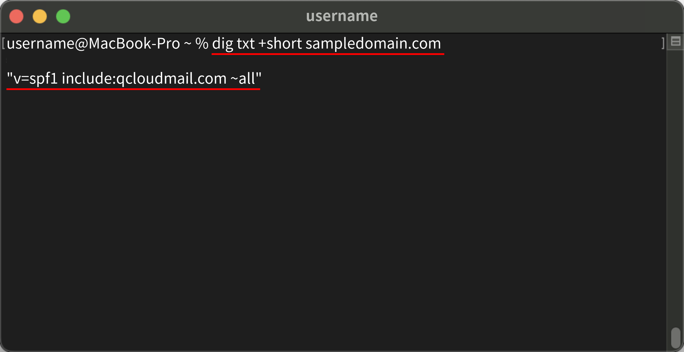dig txt +short sampledomain.com