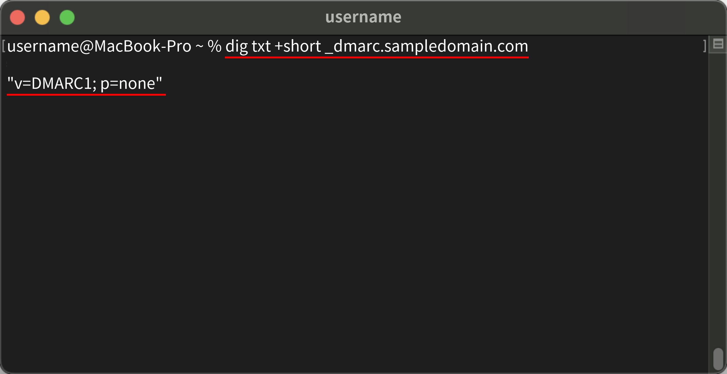 dig txt +short _dmarc.sampledomain.com