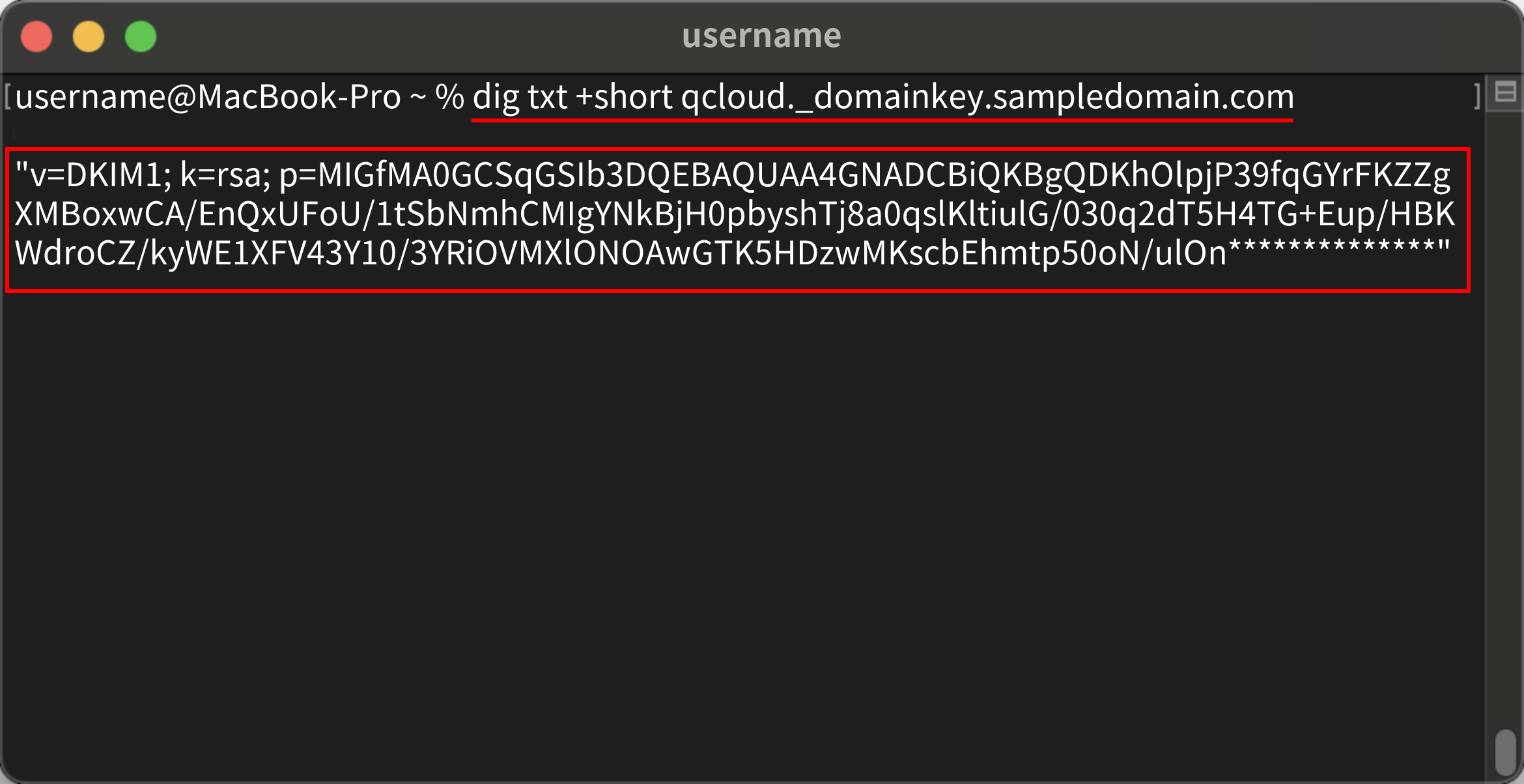 dig txt +short qcloud._domainkey.sampledomain.com