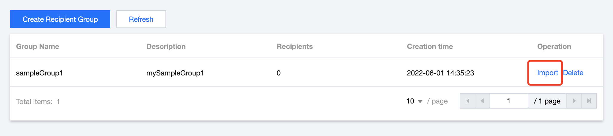 3. 受信者リスト画面に戻り、リストの右側のインポート操作をクリックし、ローカルの受信者リストをアップロードします。 説明:
