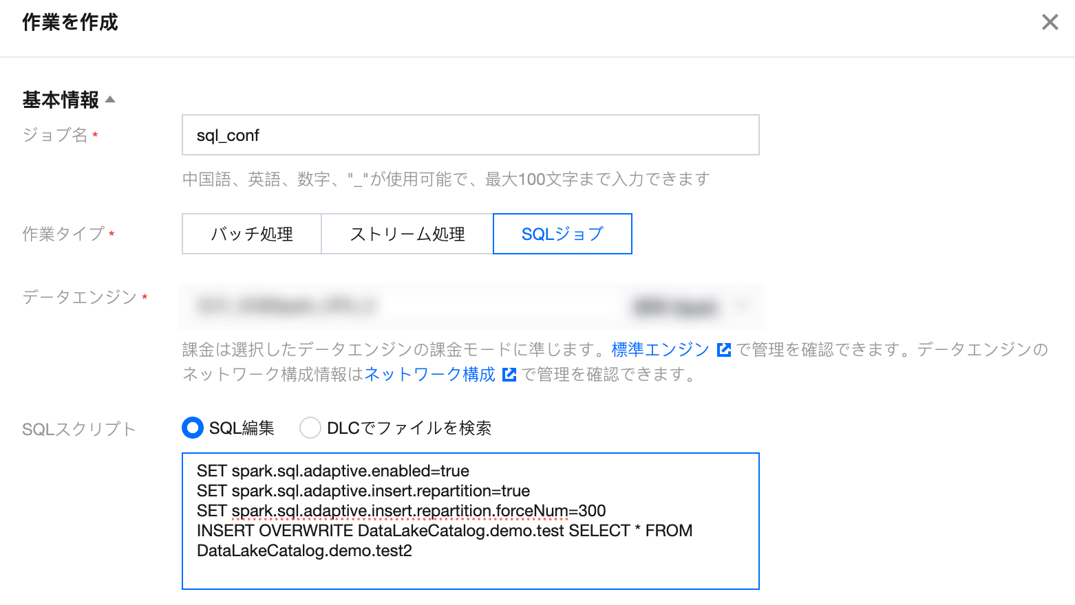 spark.sql.adaptive.enabled:truespark.sql.adaptive.insert.repartition:truespark.sql.adaptive.insert.repartition.forceNum:300 (具体的なパーティション数を指定します)