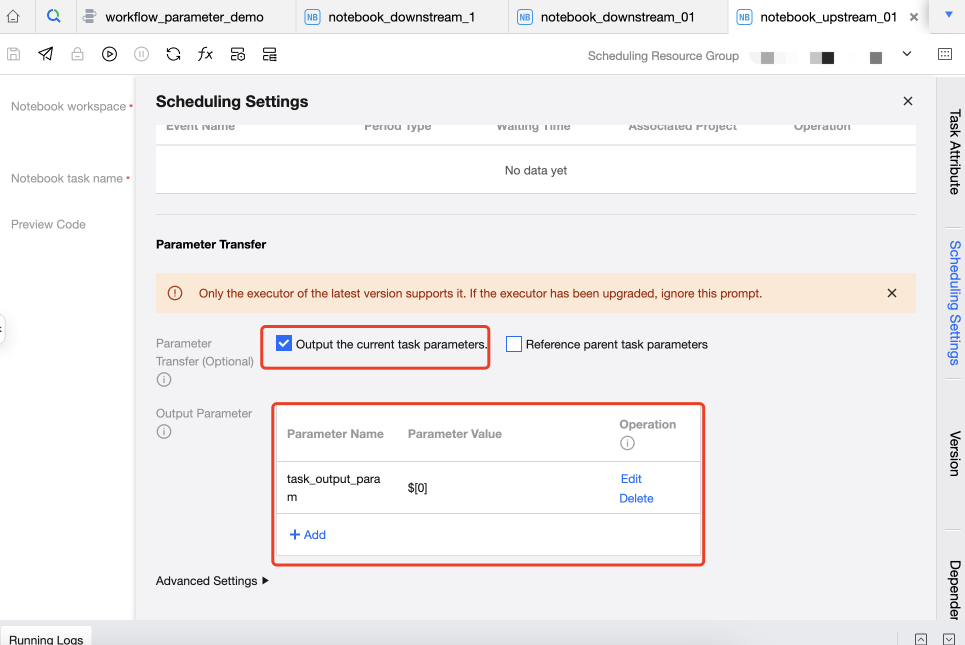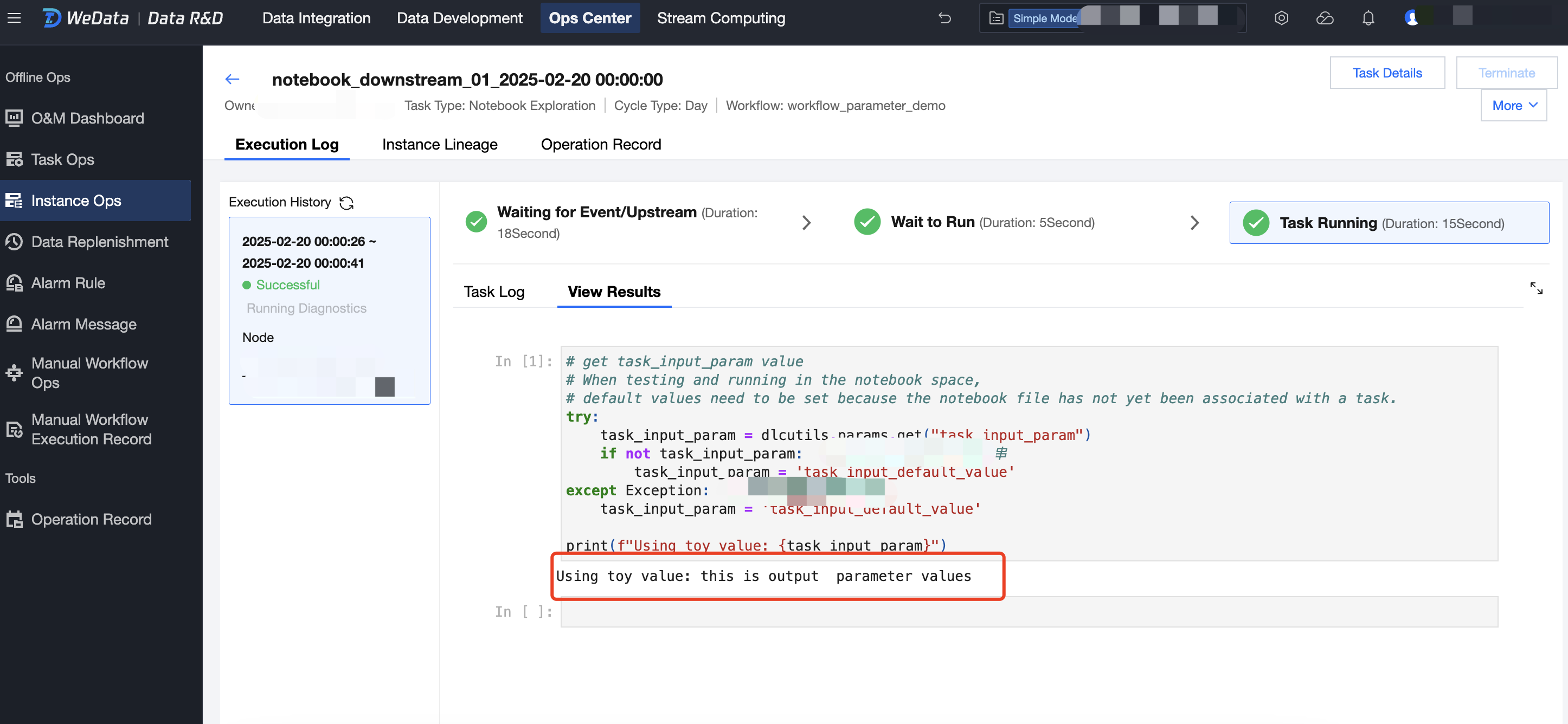# Exit the notebook and output parametersdlcutils.notebook.exit('this is output parameter values')