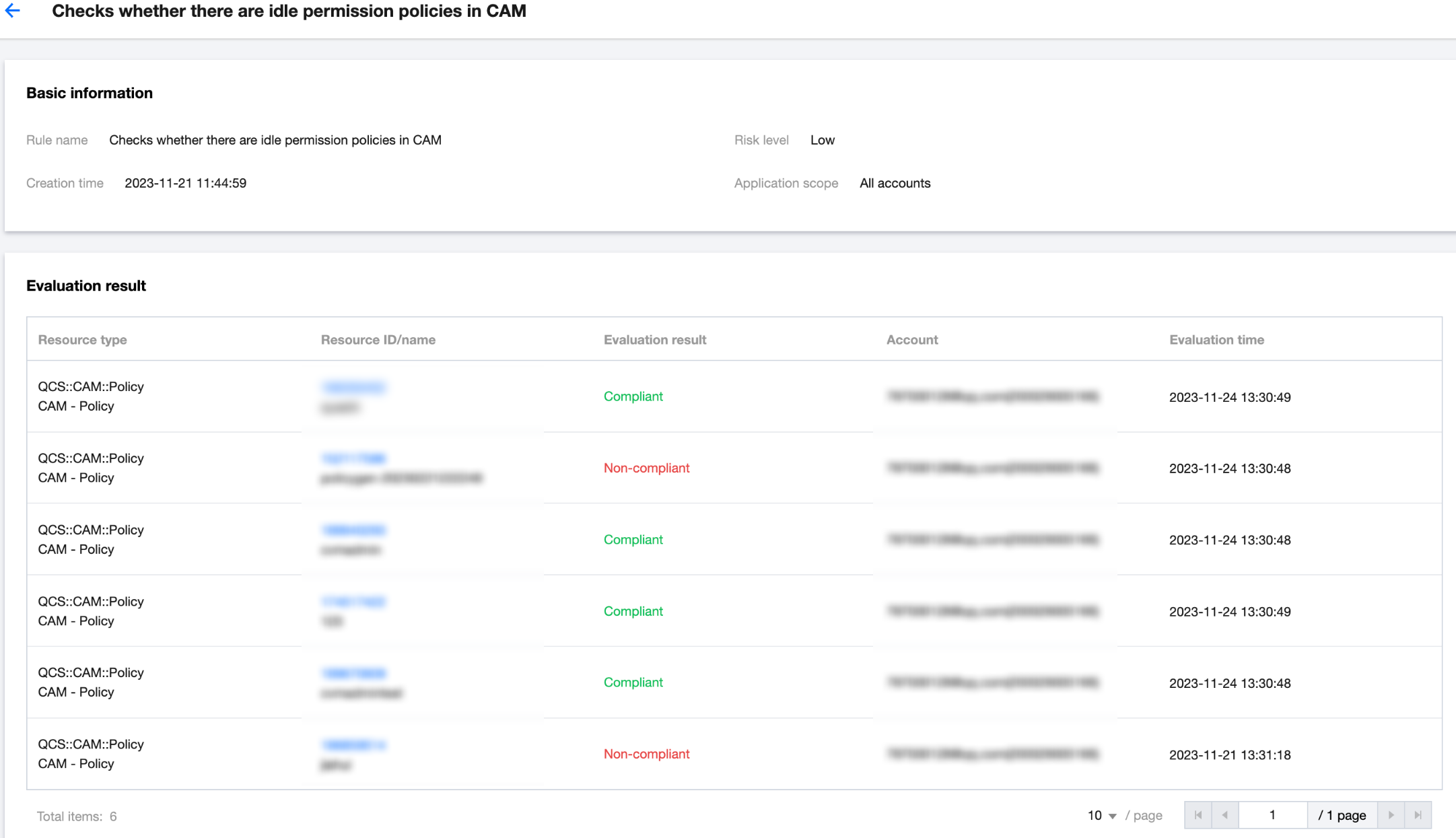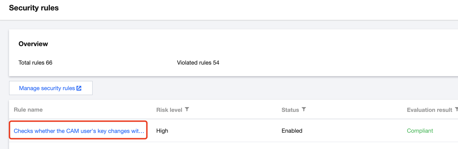 1. Control Center > 保護ルール ページで、対応するルール名をクリックすると、ルール詳細ページに移動します。 2. このページでルールの基本属性と評価結果を確認できます。