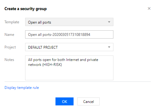 5. 【OK】をクリックして、セキュリティグループの作成を完了します。