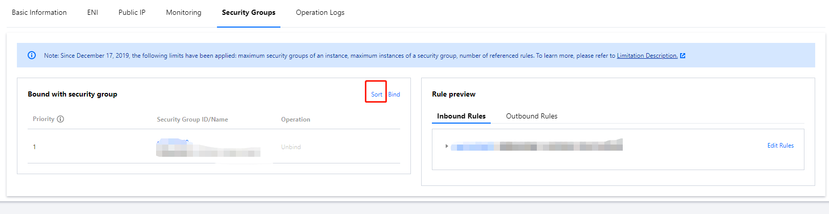 1つのCVMインスタンスは、複数のセキュリティグループに関連付けることができます。複数のセキュリティグループをインスタンスに関連付けると、これらのセキュリティグループは優先順位に基づいて実行されます。以下の操作によりセキュリティグループの優先順位を調整することができます。