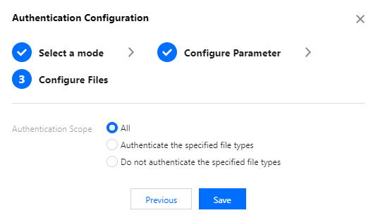 キー、パラメータ名、および期限切れ時間を設定した後、必要に応じて認証対象を指定でき、以下の3つのモードをサポートします。