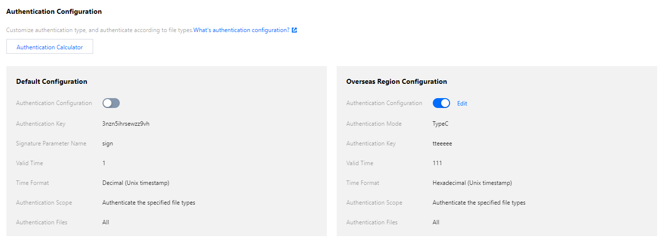 cloud.tencent.comがグローバルアクセラレーションドメイン名の場合、認証設定は下記のようになります。