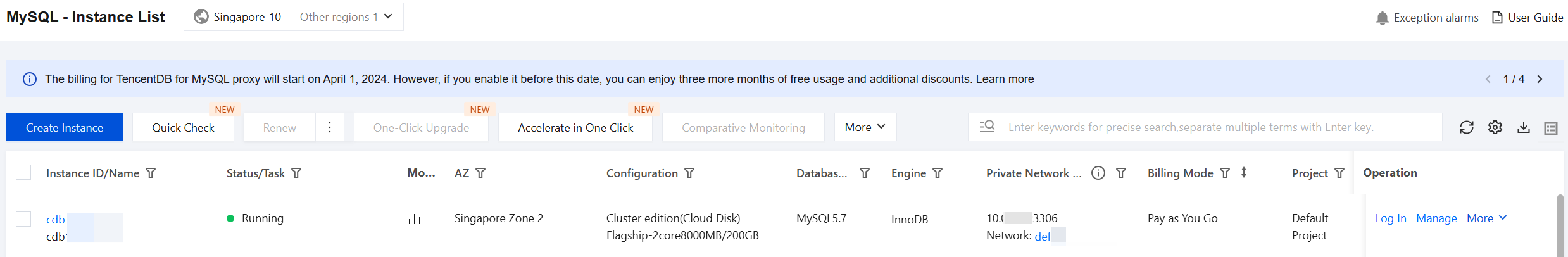 2. TencentDB for MySQLの課金モード