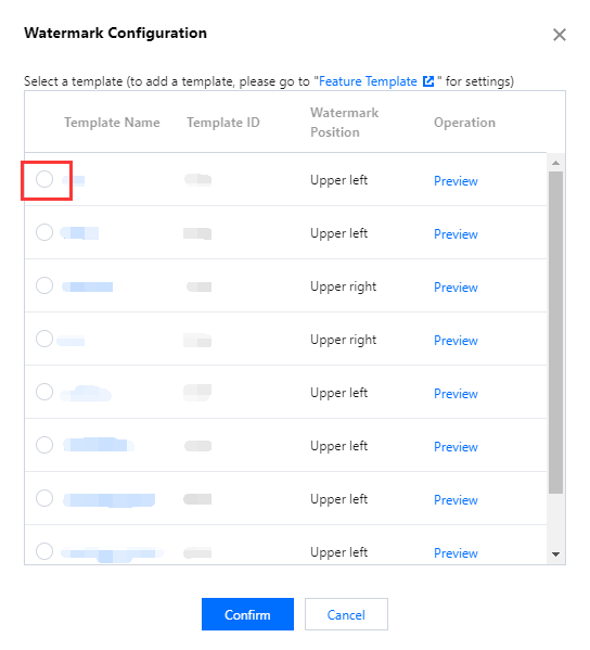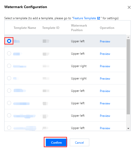 1つのドメイン名あたり、1つのウォーターマークテンプレートにのみバインドすることが可能です。バインドした後、そのドメイン名の下のすべてのストリームは、このテンプレートに従ってウォーターマークが追加されます。