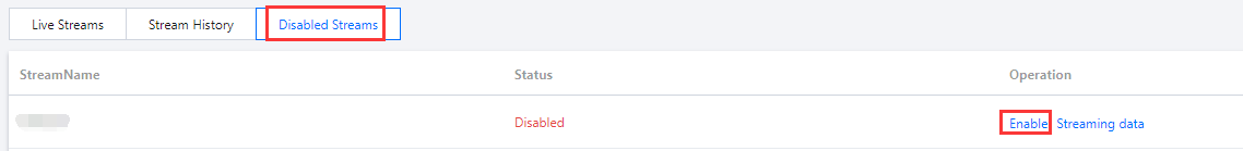 無効ストリームリストから、無効化されたCSSストリームを選択し、有効をクリックすれば、CSSストリームのプッシュを再開させることができます。