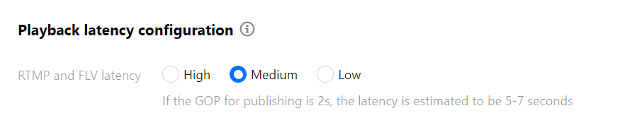 3. 適切な遅延パラメータを選択します。プッシュGOPを1s~2sに設定することをお勧めします。GOP値が大きくなるほど、遅延が大きくなります。