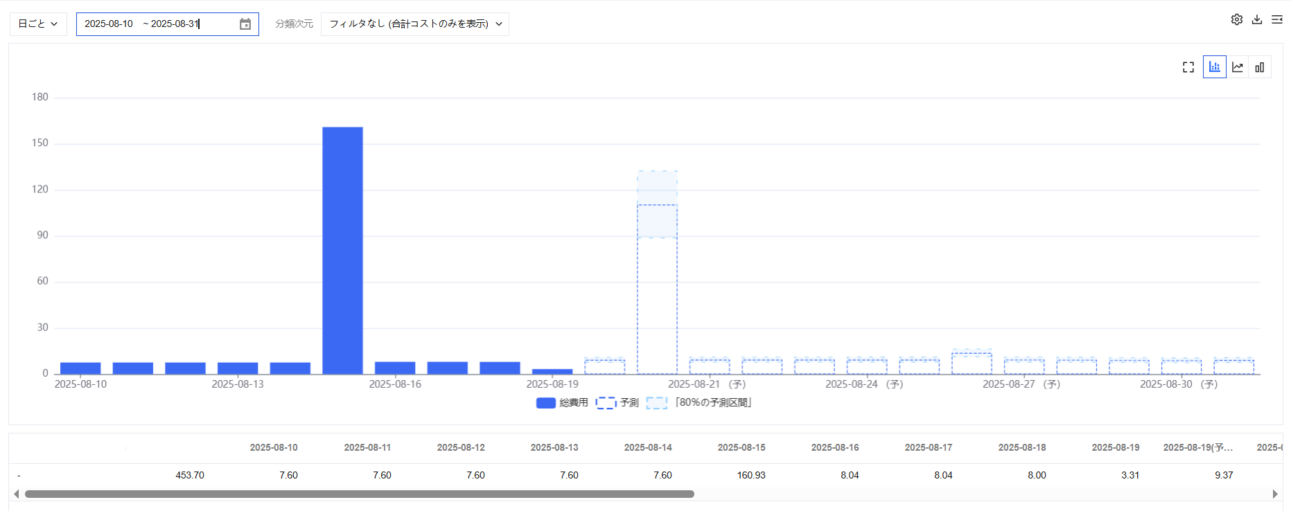 データ種類:料金予測は総料金の予測と表示のみサポートしています。