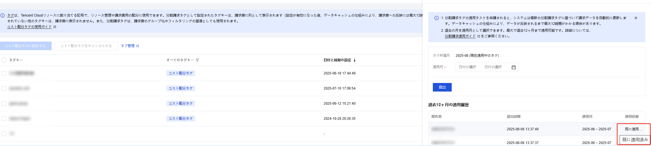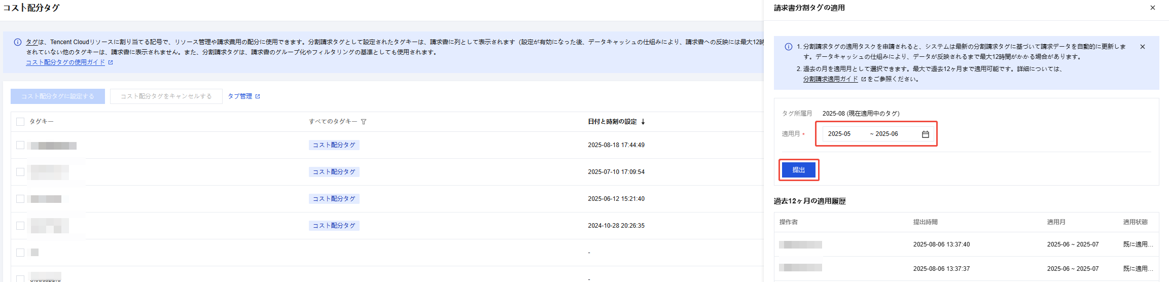 コスト配分Tagバックトラック機能は、現在コスト配分Tagとして設定されているタグキーおよびリソースとTagの関連付けを使用して、過去の月のコスト配分請求書を再計算し、最大12か月分のコスト配分Tagをバックトラックすることをサポートします。
