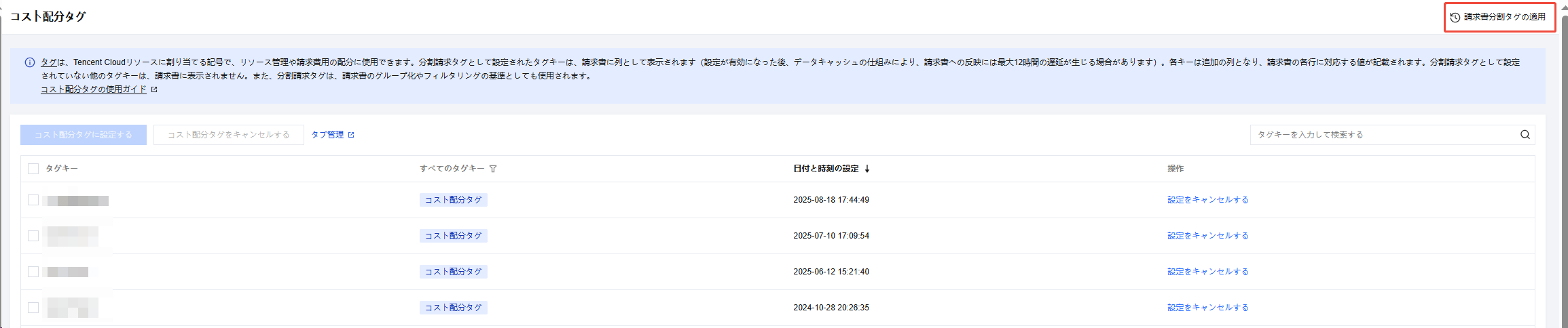 2. 左側のナビゲーションバーで、コスト配分管理 > コスト配分Tag > コスト配分Tagバックトラックを選択します。