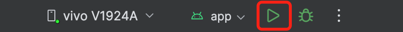 1. 下図に示すように、Android Studio の右上で Demo を実行したいデバイスを選択します。